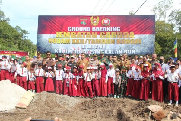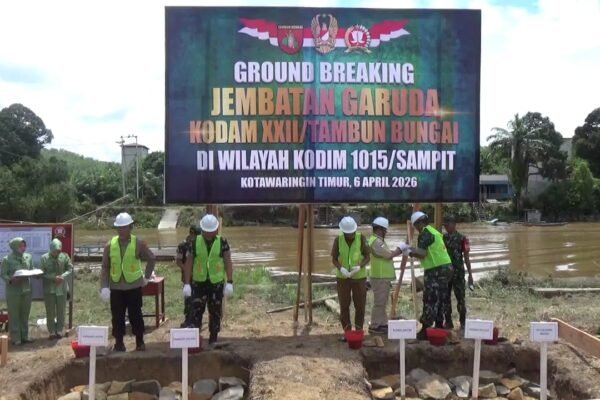 Kapuas – Komandan Kodim 1011/Kuala Kapuas, Pamungkas Army Saputro, bersama dengan Forum Koordinasi Pimpinan Daerah (FKPD) Kabupaten Kapuas, melakukan seremoni peletakan batu pertama atau ground breaking untuk pembangunan Jembatan Garuda. Acara tersebut dilaksanakan di depan Kantor BUMDes Desa Naning, Kecamatan Basarang, Kabupaten Kapuas pada hari Senin, 6 April 2026. Dalam sambutannya, Dandim 1011/Kuala Kapuas menegaskan…