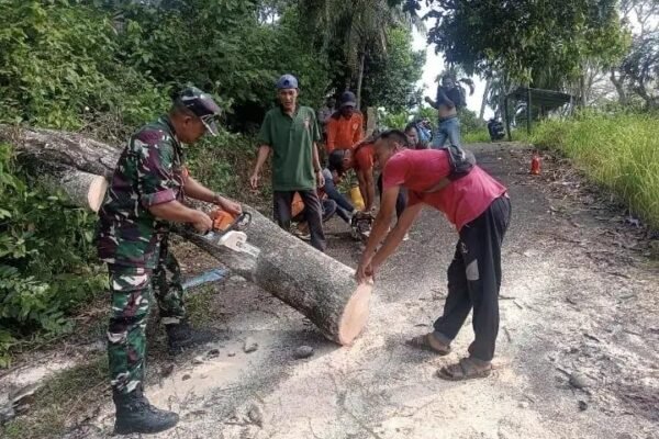 Babinsa Kodim 0112/Sabang Jajaran Korem 012/TU Gotong Royong Bersihkan Pohon Tumbang