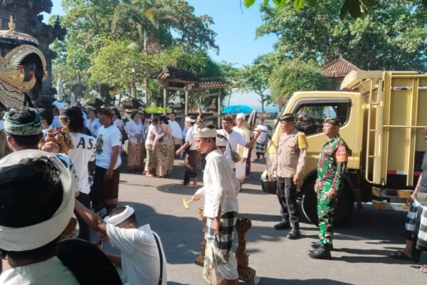 Babinsa Tembuku dan Bhabinkamtibmas Sinergi Kawal Prosesi Melasti ke Segara Watu Klotok