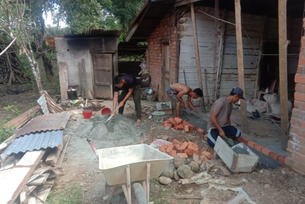 Penyaluran Bantuan RTLH kepada Ibu Betauna di Desa Lubuk Lagan oleh Satgas TMMD Ke-128