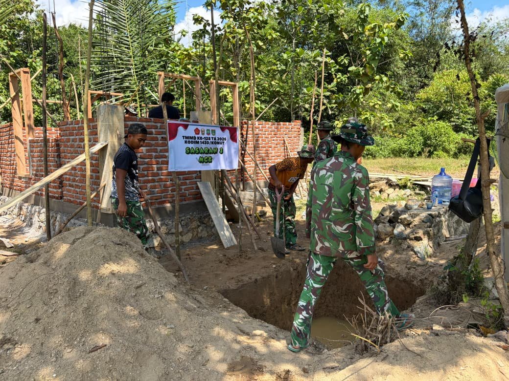 KONAWE UTARA – Satgas TMMD ke-128 Kodim 1430/Konawe Utara menunjukkan komitmen yang tinggi dalam menyelesaikan proyek fisik di lapangan. Salah satu fokus mereka adalah mempercepat penggalian MCK pada sasaran 3 yang kini tengah dikerjakan dengan intensif, pada Kamis (30/4/2026).
