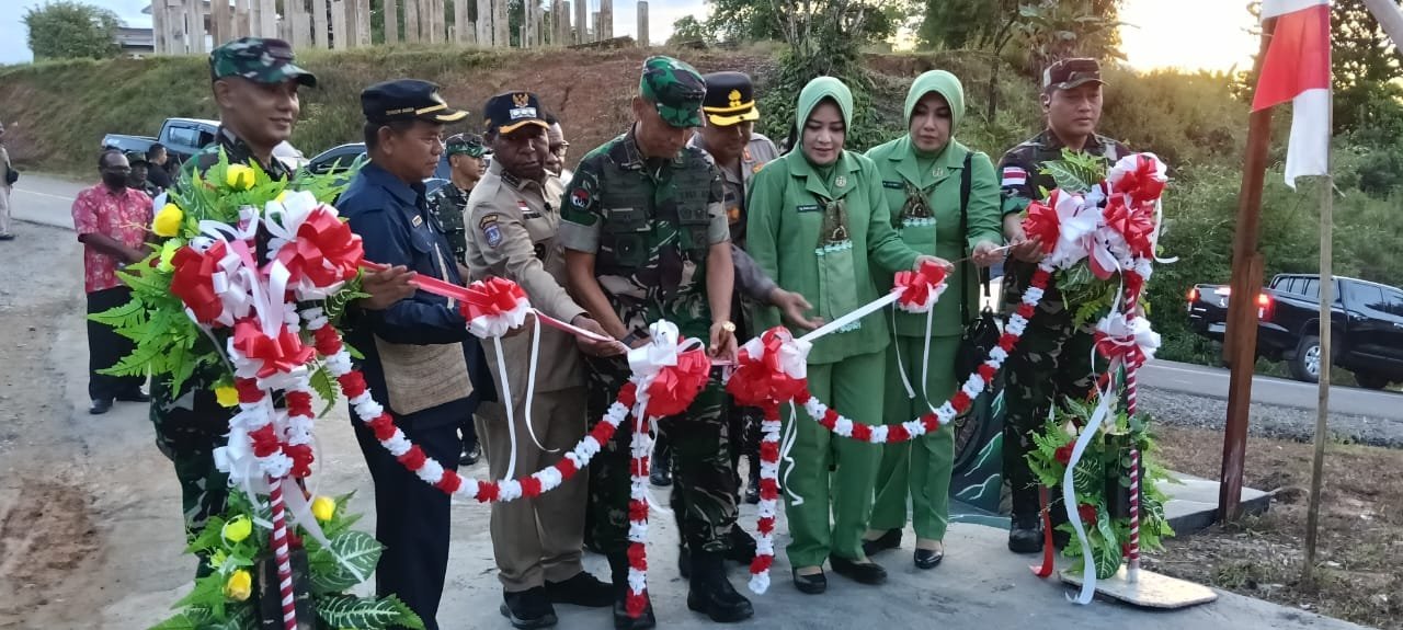 Prosesi pemotongan pita ini menjadi tanda sah bahwa pembangunan jalan sepanjang ratusan meter yang dikerjakan Satgas TMMD selama satu bulan telah selesai 100 persen dan resmi dapat digunakan oleh masyarakat.