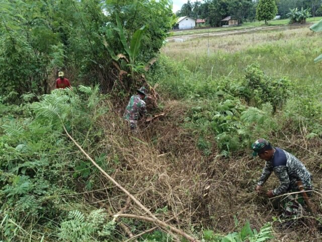 Aksi gotong royong pembersihan saluran irigasi merupakan salah satu wujud kemanunggalan TNI dengan rakyat untuk menuju wilayah binaan yang mempunyai ketahanan pangan yang mandiri serta mendukung program ketahanan pangan nasional