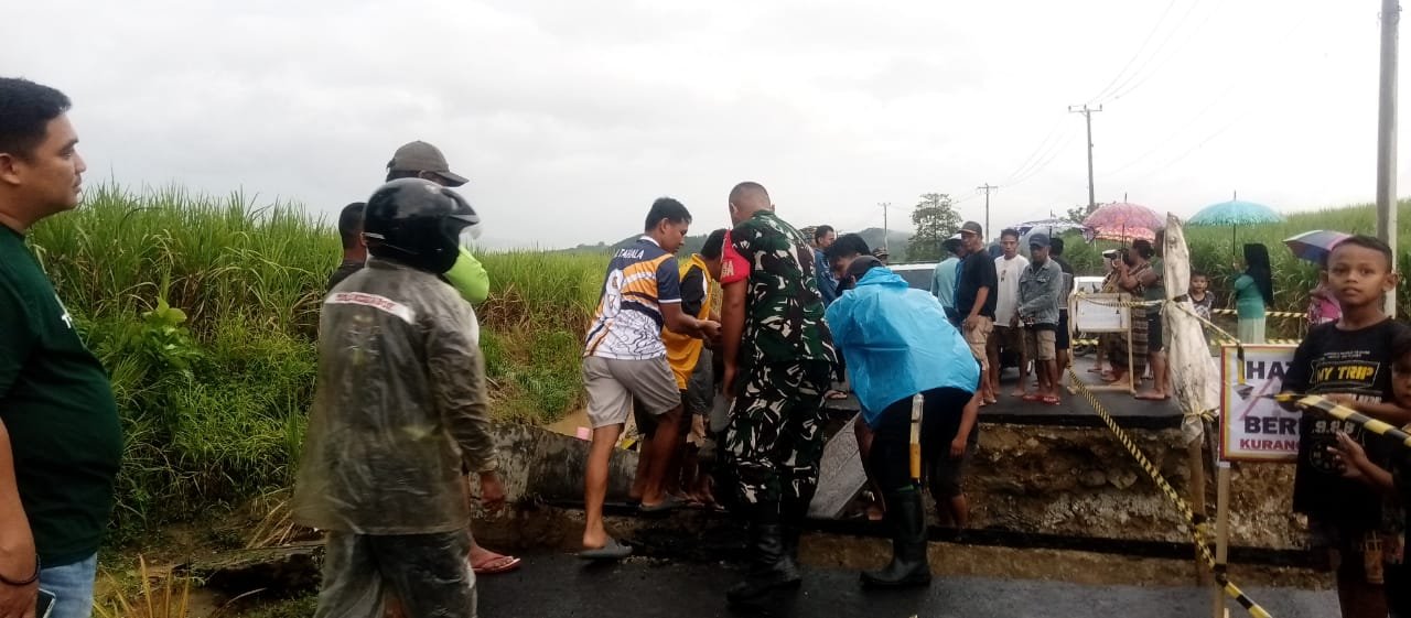 Babinsa Koramil 1316-02/Paguyaman telah melaporkan kejadian ini kepada komando atas dan akan terus memantau perkembangan situasi di lapangan, serta berkoordinasi dengan instansi terkait guna mendukung upaya penanganan lanjutan dan perbaikan jembatan.(1316).