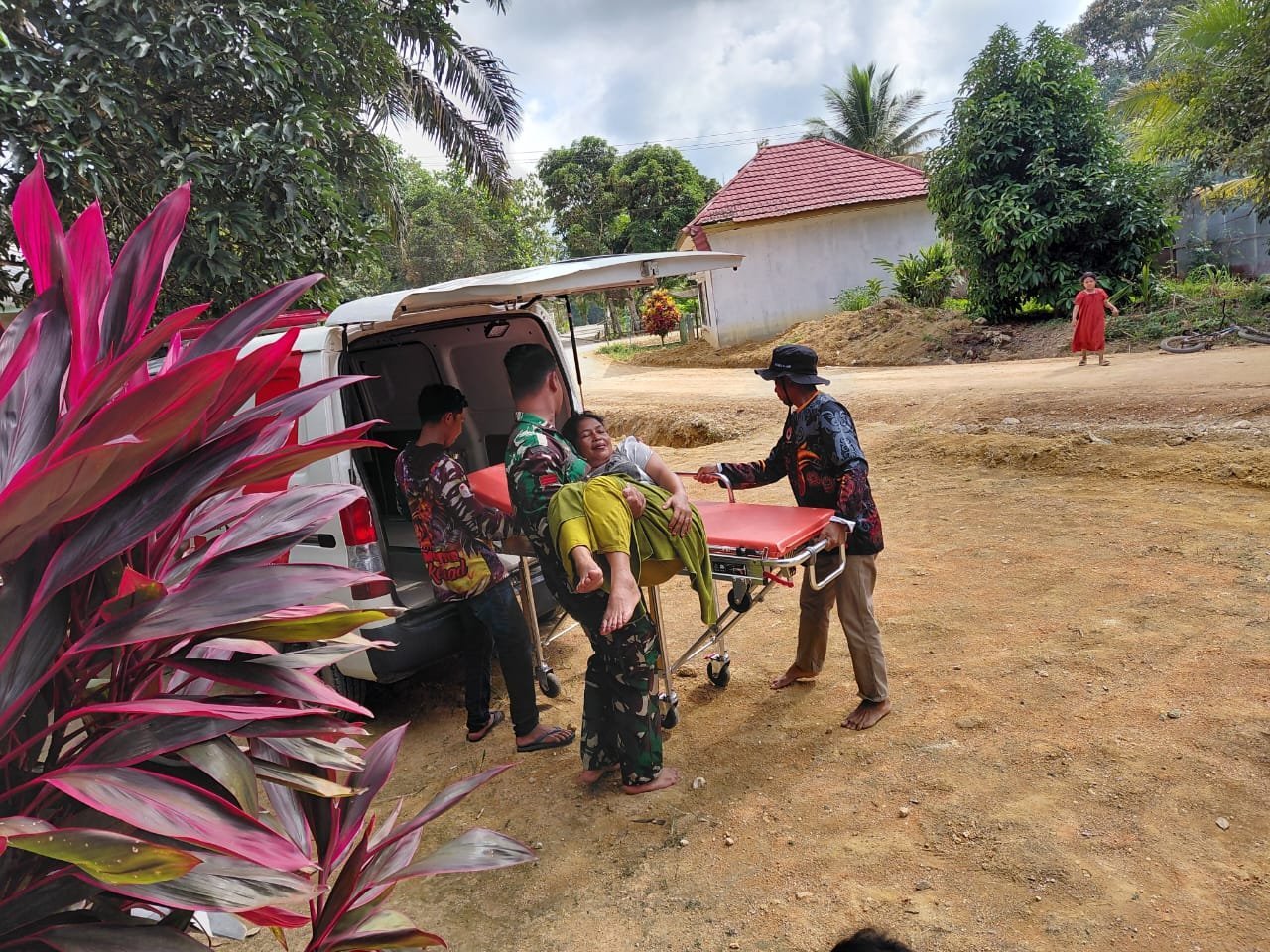 Mengetahui hal tersebut, Praka Deka yang sedang bertugas bersama Satgas TMMD langsung bergerak cepat menjemput dan mengevakuasi korban menggunakan ambulans desa KH 8851 RD. Korban kemudian dibawa ke Poskesdes Desa Batu Kotam untuk mendapatkan pertolongan medis.