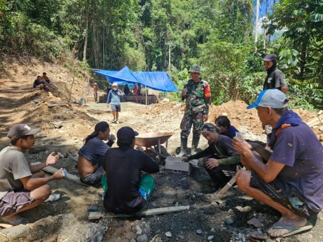 Kolaka Timur, 23 Oktober 2025 — Di tengah pelaksanaan pembangunan Deker ke-5 dalam program TNI Manunggal Membangun Desa (TMMD) ke-126 Kodim 1412/Kolaka, tampak pemandangan penuh kepedulian ketika seorang Babinsa yang tergabung dalam Satgas TMMD membagikan air minum kepada masyarakat yang turut bergotong royong di lokasi pekerjaan, Desa Alaha, Kecamatan Ueesi, Kabupaten Kolaka Timur.