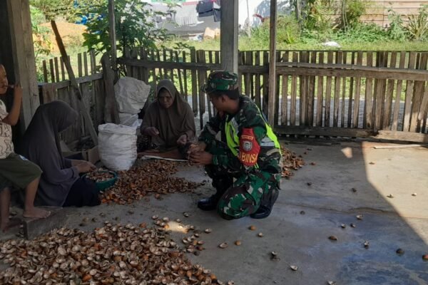ACEH JAYA – Aktivitas pengupasan pinang kering yang dilakukan warga di Desa Lhok Geulempang, Kecamatan Setia Bakti, Kabupaten Aceh Jaya, mendapat perhatian Babinsa Koramil 03/Setia Bakti Kodim 0114/Aceh Jaya, Praka Thole, Rabu (11/03/2026). Saat melaksanakan komunikasi sosial, Babinsa menyempatkan diri berbincang dengan masyarakat yang sedang mengupas pinang. Kegiatan tersebut menjadi sarana untuk mempererat hubungan sekaligus…