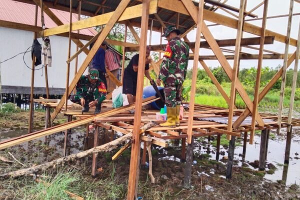 TAPIN – Semangat gotong royong dan kebersamaan terus ditunjukkan Babinsa di wilayah binaannya. Seperti yang dilakukan Babinsa Koramil 1010-05/Candi Laras Utara (CLU) Kodim 1010/Tapin yang turut membantu warga membangun rumah panggung berbahan kayu di Desa Sungai Puting, Kecamatan Candi Laras Utara, Selasa (17/3/2026). Dalam kegiatan tersebut, Sertu Jhony bersama Koptu Krisbiantoro turun langsung membantu proses…