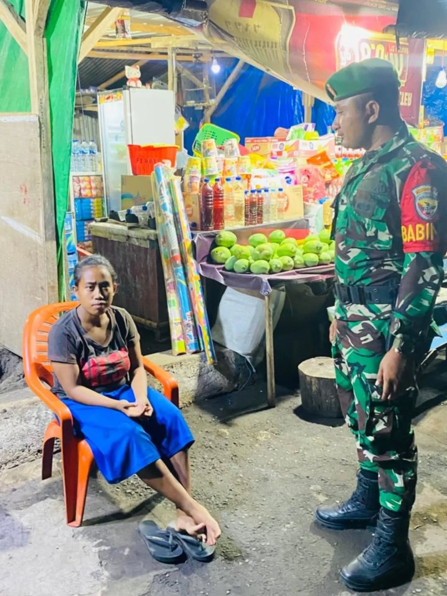 Dalam kesempatan tersebut, Pratu Reflianus juga berinteraksi langsung dengan warga yang sedang melaksanakan ronda malam, sekaligus memberikan imbauan agar tetap waspada terhadap potensi gangguan keamanan yang mungkin timbul di lingkungan sekitar.