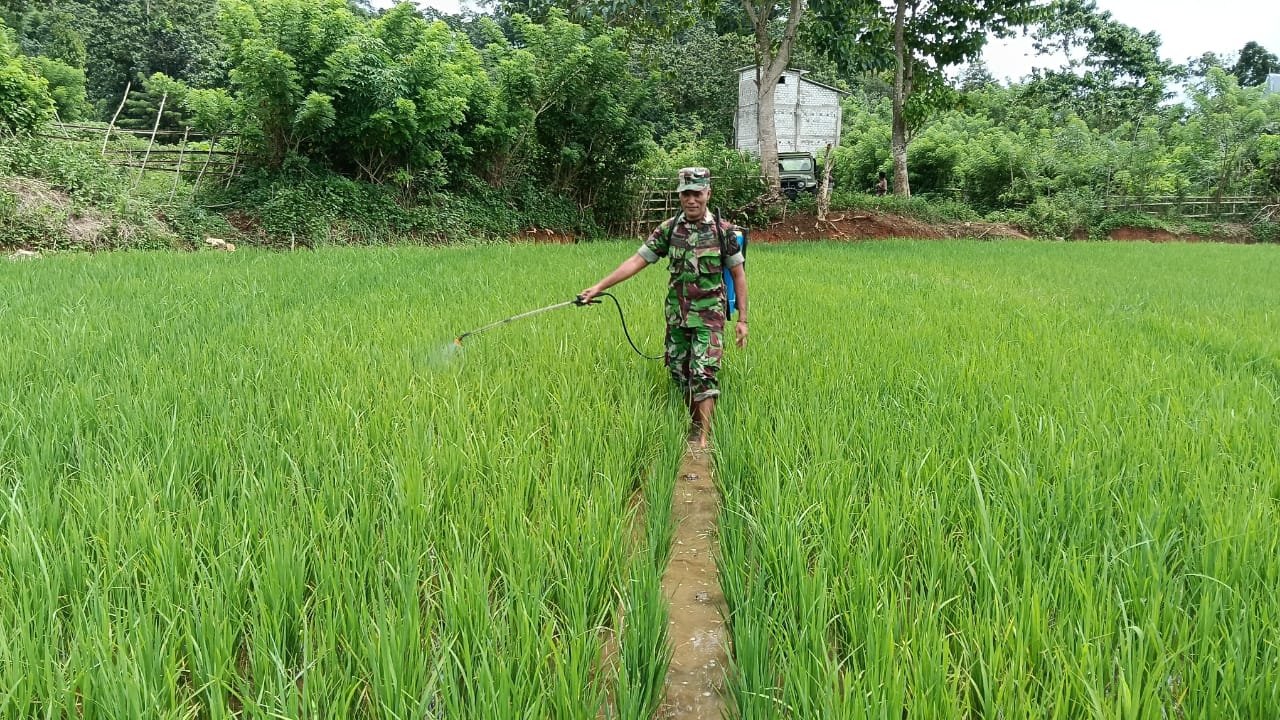Serma Suherman menjelaskan bahwa tugas Babinsa dalam kegiatan ini adalah memberikan pendampingan berupa penyemprotan untuk melindungi tanaman dari hama dan penyakit. “Penyemprotan ini sangat penting agar tanaman padi dapat tumbuh dengan optimal dan menghasilkan panen yang berkualitas,” ujarnya.