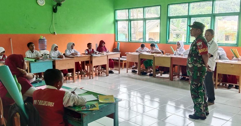 BULUKUMBA – Dalam upaya melindungi generasi muda dari pengikisan nilai-nilai kebangsaan, Serka Basran, Babinsa Kelurahan Benjala, melaksanakan kegiatan penyuluhan mengenai Wawasan Kebangsaan (Wasbang) dan Cinta Tanah Air kepada siswa-siswi di MIS 7 Benjala, yang berlokasi di Lingkungan Batu Mesu, Kecamatan Bonto Bahari, Kabupaten Bulukumba pada hari Kamis (05/02/2026).