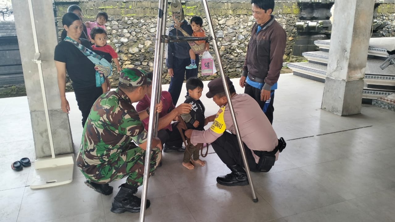 Bangli – Dalam upaya mendukung pelayanan kesehatan terpadu bagi masyarakat, Babinsa Desa Landih, Koramil 01/Bangli, Kodim 1626/Bangli, Serma I Komang Juni Suantara bersama Bhabinkamtibmas Desa Landih melaksanakan pemantauan sekaligus pendampingan kegiatan Posyandu Balita “Melati” yang dirangkaikan dengan Posyandu Remaja dan Lansia. Kegiatan berlangsung di Balai Banjar Palaktiying, Desa Landih, Kecamatan Bangli. Rabu (15/01/25).