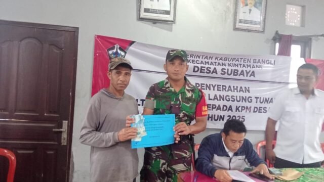 Bangli – Babinsa Desa Subaya Koramil 1626-04/Kintamani, Koptu Dewa Agung Purnama, melaksanakan pendampingan kegiatan pembagian Bantuan Langsung Tunai Dana Desa (BLT DD) tahap XI tahun 2025 yang bertempat di Kantor Desa Subaya, Kecamatan Kintamani, Kabupaten Bangli. Rabu (12/11/2025)