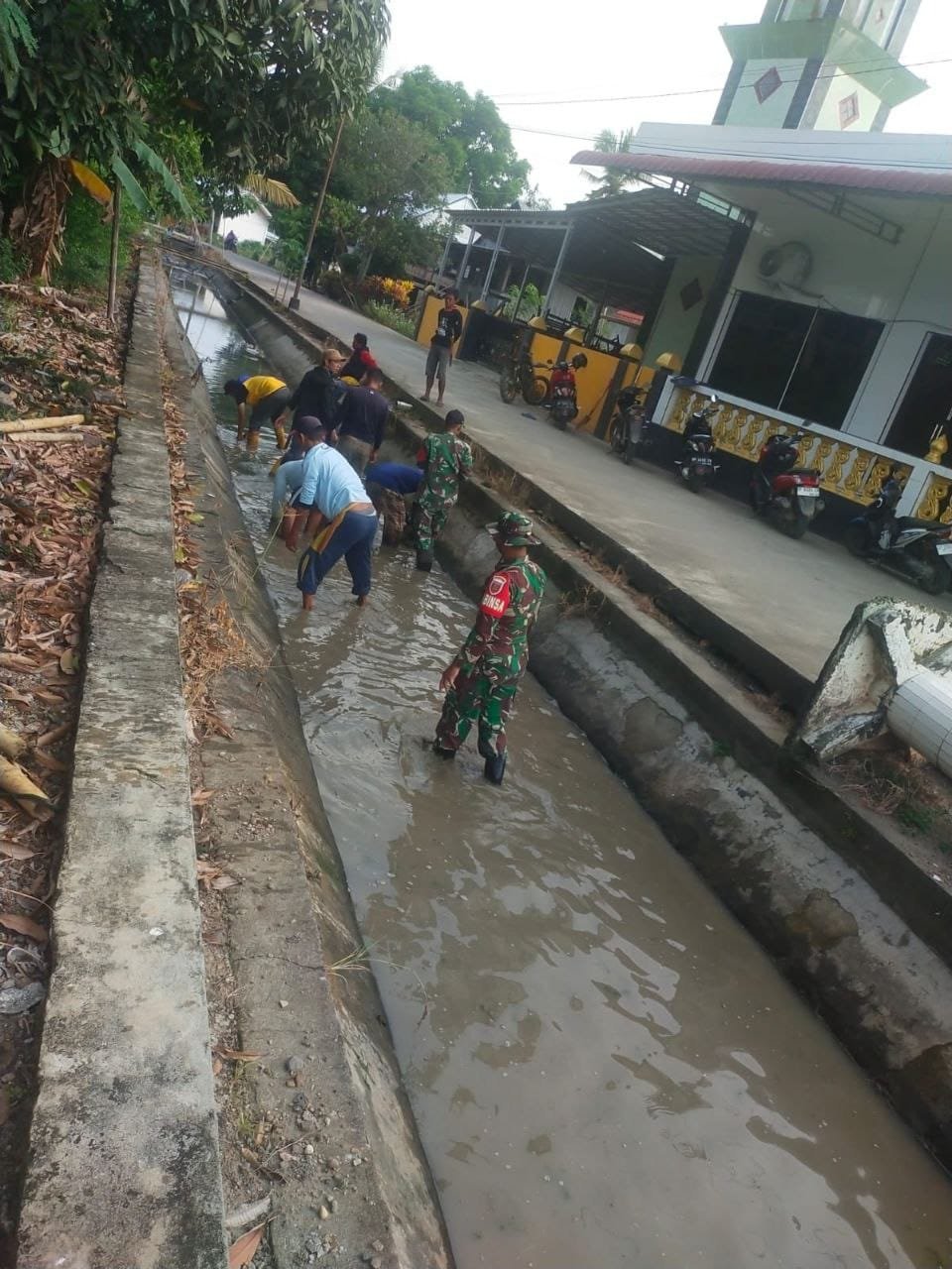 Kegiatan gotong royong ini merupakan langkah persiapan vital menjelang musim turun ke sawah. Pembersihan saluran irigasi dilakukan secara menyeluruh untuk memastikan kelancaran suplai air ke lahan pertanian, yang sangat dibutuhkan untuk memulai masa tanam padi.
