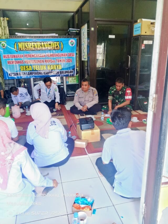 BALANGAN – Dalam rangka penyusunan Rencana Kerja Pemerintah (RKP) Desa Teluk Karya Tahun 2026, Pemerintah Desa Teluk Karya melaksanakan kegiatan Musyawarah Perencanaan Pembangunan (Musrenbangdes) bertempat di Balai Desa Teluk Karya, Kecamatan Lampihong, Kabupaten Balangan, pada Rabu (15/10/2025) pukul 09.30 Wita.