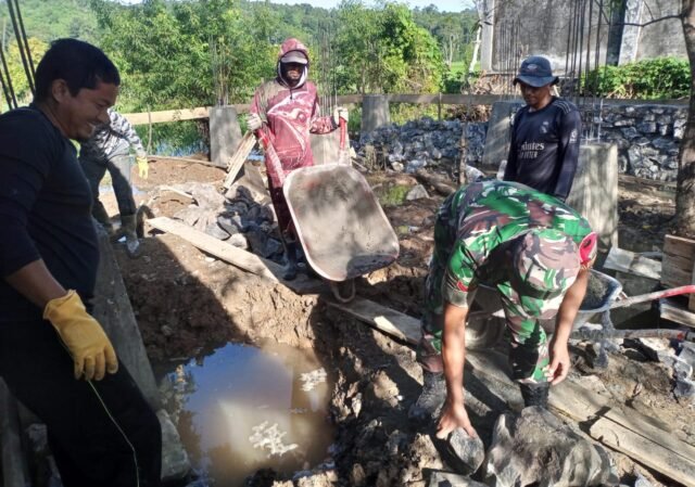 ACEH JAYA – Sebagai wujud nyata kemanunggalan TNI dengan rakyat, Babinsa Koramil 01/Jaya, Kodim 0114/Aceh Jaya, Koptu Aris Kartiko, secara aktif terlibat dalam kegiatan karya bakti membantu masyarakat. Kali ini, Koptu Aris Kartiko bersama warga Desa Meutara, Kecamatan Jaya, Kabupaten Aceh Jaya, bahu-membahu membantu Sdr. Sayed dalam proses pembangunan rumahnya, dengan fokus pada pengangkatan batu gunung dan pengadukan semen, Rabu (30/07).