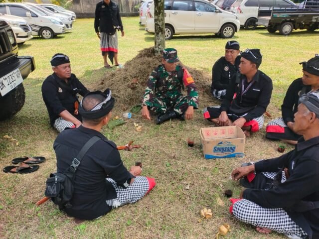 Bangli – Dalam rangka memperkuat sinergitas dengan aparat adat, Babinsa Desa Kayubihi, Koramil 01/Bangli, Kodim 1626/Bangli, Serka I Wayan Suastika, melaksanakan kegiatan Pembinaan Teritorial melalui Komunikasi Sosial (Komsos) dengan Pecalang Desa Adat Kayubihi bertempat di Jaba Pura Dalem Agung Kayubihi, Kec/Kab. Bangli. Kamis (21/8/25).