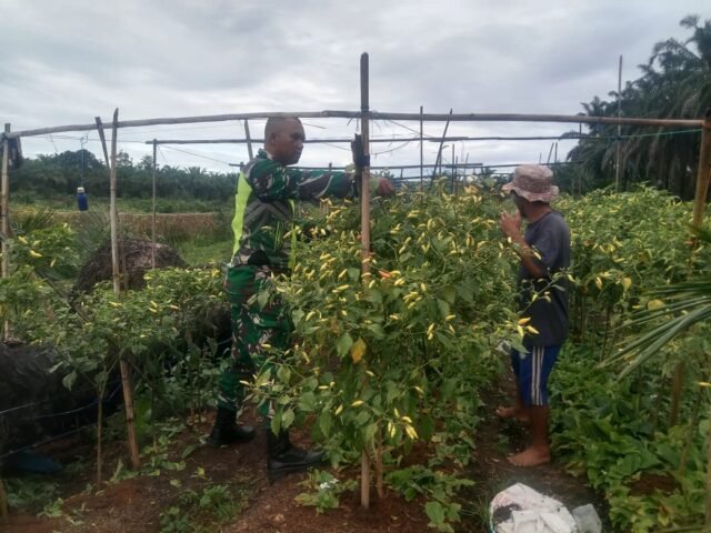 Subulussalam – Babinsa Koramil 01/Simpang Kiri Kodim 0118/Subulussalam, Koptu B. Pelawi, turun langsung membantu petani memanen cabai di lahan milik Agam Ameh, warga Desa Sikalondang, Kecamatan Simpang Kiri, Kota Subulussalam, Aceh, Rabu (5/11/2025).