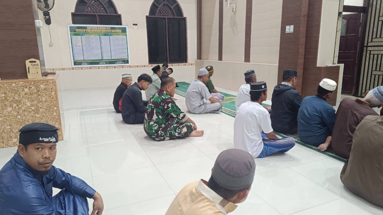 Setelah pelaksanaan sholat Subuh berjamaah, para Babinsa langsung mengadakan Komsos secara santai bersama tokoh agama, tokoh masyarakat, dan warga setempat. Dalam sesi Komsos tersebut, dibahas berbagai isu penting, mulai dari upaya peningkatan keamanan lingkungan (Siskamling), kebersihan, hingga pencegahan potensi konflik sosial.
