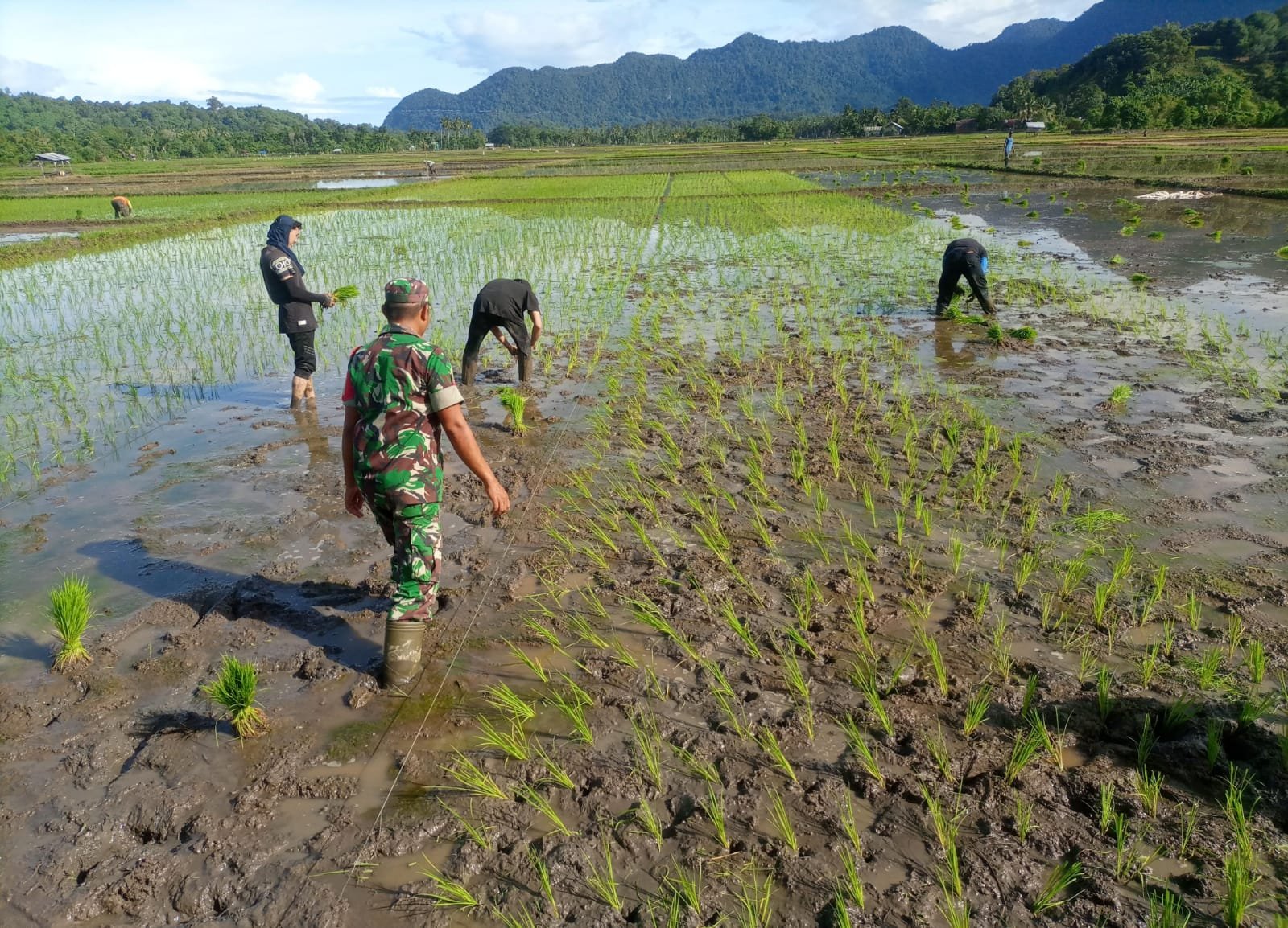 “Kami harap para petani terus semangat dalam menanam dan merawat tanaman padi. Dengan kerja sama yang baik, hasil pertanian dapat meningkat dan ketahanan pangan di desa tetap terjaga,” ujar Koptu Aris di sela kegiatan.
