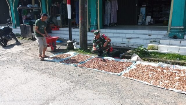 ACEH JAYA – Babinsa Koramil 01/Jaya Kodim 0114/Aceh Jaya, Serda Yunadi, menunjukkan kepedulian nyata dengan membantu Bapak Muhammad (49 tahun) menjemur hasil panen pinang miliknya di Desa Pasar Lamno, Kecamatan Jaya, Kabupaten Aceh Jaya, Minggu (05/10). Aksi gotong royong ini dilakukan karena pinang milik Bapak Muhammad masih dalam kondisi basah dan perlu segera dikeringkan agar siap dijual dengan harga pasar yang lebih baik.