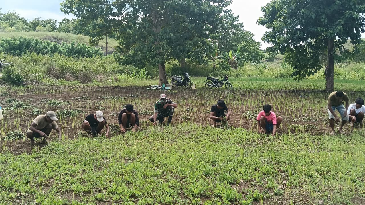 SUMBA TENGAH – Untuk mendukung ketahanan pangan di daerah binaan, Babinsa Koramil 03/Katikutana dari Kodim 1613/Sumba Barat, Serma Suherman, bersama dengan warga setempat melaksanakan kegiatan perawatan tanaman padi ladang di Desa Anakalang, Kecamatan Katikutana, Kabupaten Sumba Tengah, pada Minggu, 8 Februari 2026. Kegiatan ini mencakup pencabutan rumput liar yang tumbuh di antara tanaman padi, yang berpotensi menghambat pertumbuhannya dengan menyerap unsur hara yang diperlukan.