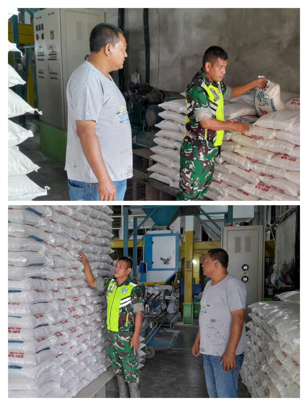 Kegiatan ini bertujuan untuk memastikan ketersediaan pasokan beras di wilayah tersebut menjelang akhir tahun dan menyambut awal tahun baru. Selama pemeriksaan, Pelda T. Fahrial Putra melakukan verifikasi terhadap jumlah stok beras yang tersimpan, kondisi penyimpanan, serta proses pengolahan padi menjadi beras di kilang tersebut.