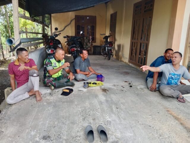 ACEH BARAT – Sertu Abdul Taleb, Babinsa Koramil 03/Kaway XVI Kodim 0105/Aceh Barat, melaksanakan kegiatan Komunikasi Sosial (Komsos) bersama warga di Desa Muko, Kecamatan Kaway XVI, Kabupaten Aceh Barat, Minggu (21/09/2025).