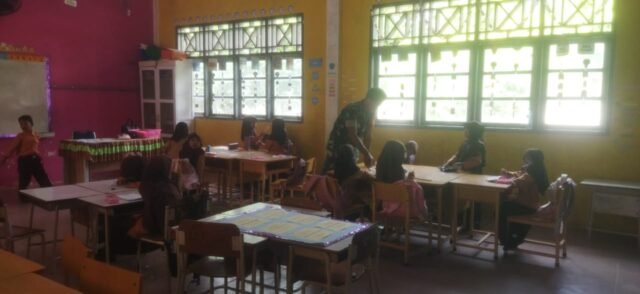 ACEH JAYA – Babinsa Koramil 03 Setia Bakti Kodim 0114/Aceh Jaya, Serda Zainal Aripin, turun langsung ke SD Negeri 3 Setia Bakti di Desa Lhok Buya, Kecamatan Setia Bakti, Kabupaten Aceh Jaya, untuk memberikan wawasan kebangsaan (Wasbang) kepada para siswa, Sabtu (18/10).