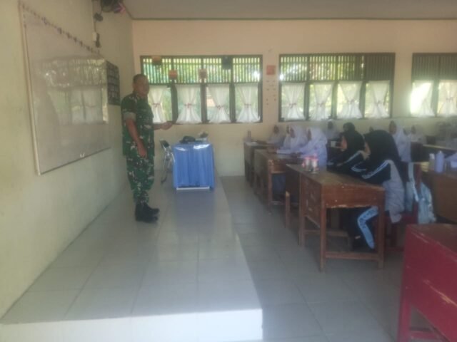 ACEH JAYA – Dalam upaya menanamkan nilai-nilai cinta tanah air dan memperkuat rasa nasionalisme di kalangan generasi muda, Babinsa Koramil 05/Panga Kodim 0114/Aceh Jaya, Serda M. Ambri, memberikan pembekalan wawasan kebangsaan (Wasbang) kepada para pelajar SMAN 1 Panga yang berlokasi di Desa Keude Panga, Kecamatan Panga, Kabupaten Aceh Jaya, Rabu (15/10).