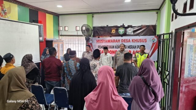 ACEH BARAT – Bintara Pembina Desa (Babinsa) Koramil 07/ Johan Pahlawan, Kodim 0105/Aceh Barat, Sertu Dedi Aryanto, menghadiri kegiatan rapat pembentukan Koperasi Merah Putih di Desa Pasar Aceh, Kecamatan Johan Pahlawan, Kabupaten Aceh Barat, Minggu (25-05-2025).