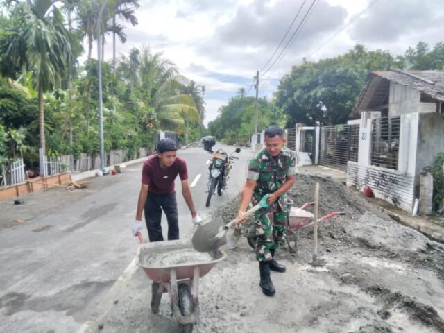 ACEH BARAT – Semangat gotong royong dan kemanunggalan TNI dengan rakyat kembali terwujud dalam kegiatan pembangunan infrastruktur di Desa Cot Pluh, Kecamatan Samatiga, Kabupaten Aceh Barat. Babinsa Koramil 09/Samatiga Kodim 0105/Aceh Barat, Kopda Hendrawan, turut membantu warga dalam proses pengecoran parit yang menjadi bagian penting dari upaya peningkatan kualitas lingkungan dan pencegahan banjir di wilayah tersebut, Rabu (15/10/2025).