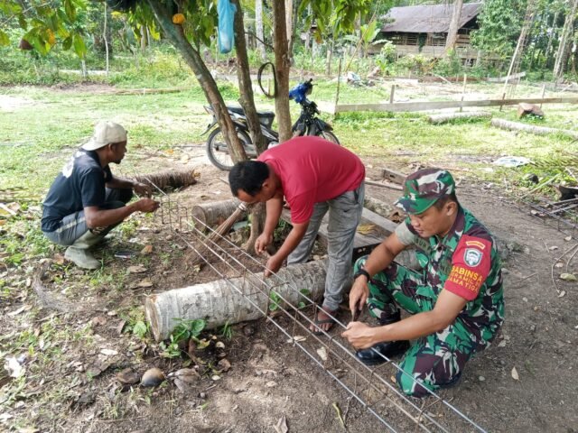 Dengan mengenakan seragam loreng khas TNI dan tangan yang tak segan memegang besi bangunan, Sertu Puguh turut serta dalam proses pengikatan rangka besi pondasi rumah. Kehadirannya bukan sekadar simbol, melainkan bentuk nyata kepedulian dan semangat gotong royong yang terus dijaga oleh jajaran TNI di wilayah teritorialnya.