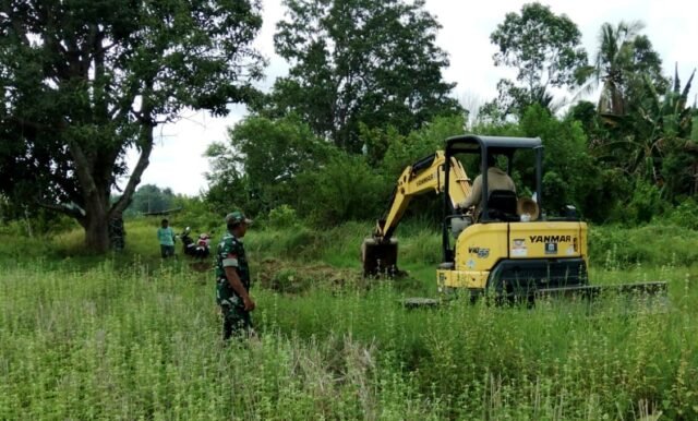 Kegiatan ini merupakan salah satu rangkaian kegiatan Optimalisasi Lahan (Oplah) yang bertujuan menyiapkan lahan pertanian bagi para petani. Dengan menggunakan alat berat excavator, Babinsa membantu membuat saluran air dan menyiapkan lahan pertanian. Selain itu, Babinsa juga melakukan sosialisasi dan edukasi kepada para petani agar terus bersemangat dalam melaksanakan kegiatan bercocok tanam.