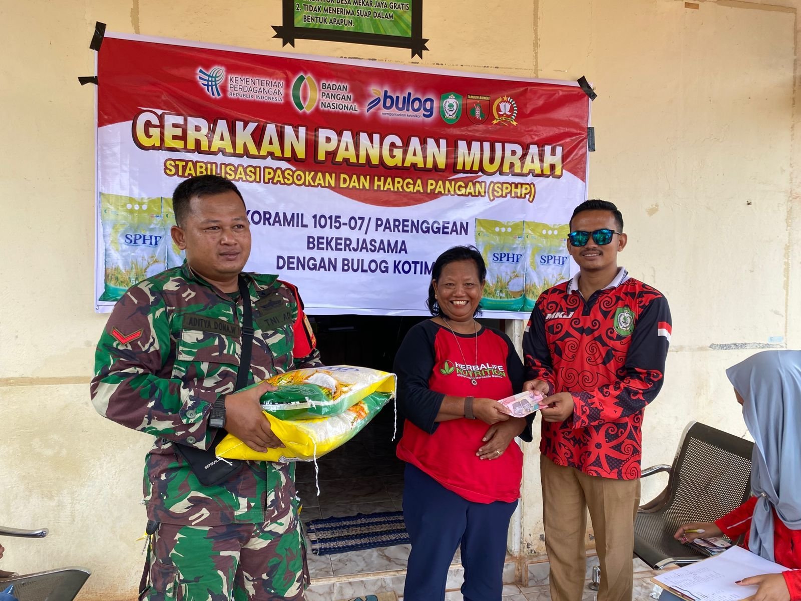 Danramil 1015-07/Parenggean Kapten Inf Maspur dalam keterangannya menjelaskan bahwa Gerakan Pangan Murah ini adalah wujud nyata kepedulian TNI AD terhadap kesulitan rakyat.