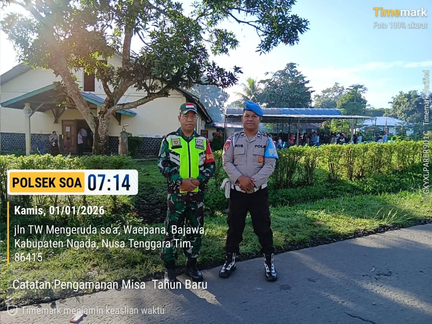 Ngada – Dalam rangka memberikan rasa aman bagi umat Katolik yang merayakan Tahun Baru, Babinsa Koramil 1625-01/Bajawa, Sertu Dominikus Noy, turut ambil bagian dalam pengamanan Misa Tahun Baru 2026 yang berlangsung di Kapela St. Paulus Waepana, Desa Waepana, Kecamatan Soa, Kabupaten Ngada, pada Kamis, 1 Januari 2026, pagi. Pengamanan dimulai sejak pukul 07.00 WITA dan berlanjut hingga seluruh rangkaian misa selesai.