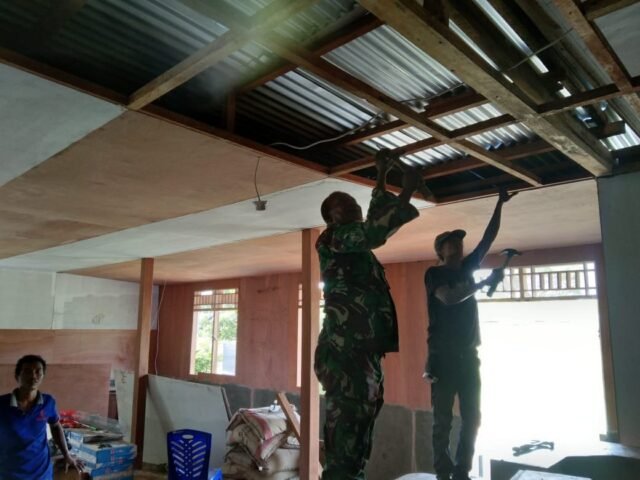 Babinsa Kwatisore Luangkan Waktu Bantu Masyarakat Perbaiki Plafon Rumah