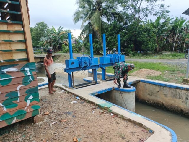 Sertu Rahmad Fitriansyah menyampaikan bahwa pengecekan pintu air ini merupakan langkah penting dalam menjaga keberlangsungan produksi pertanian di wilayah binaan.