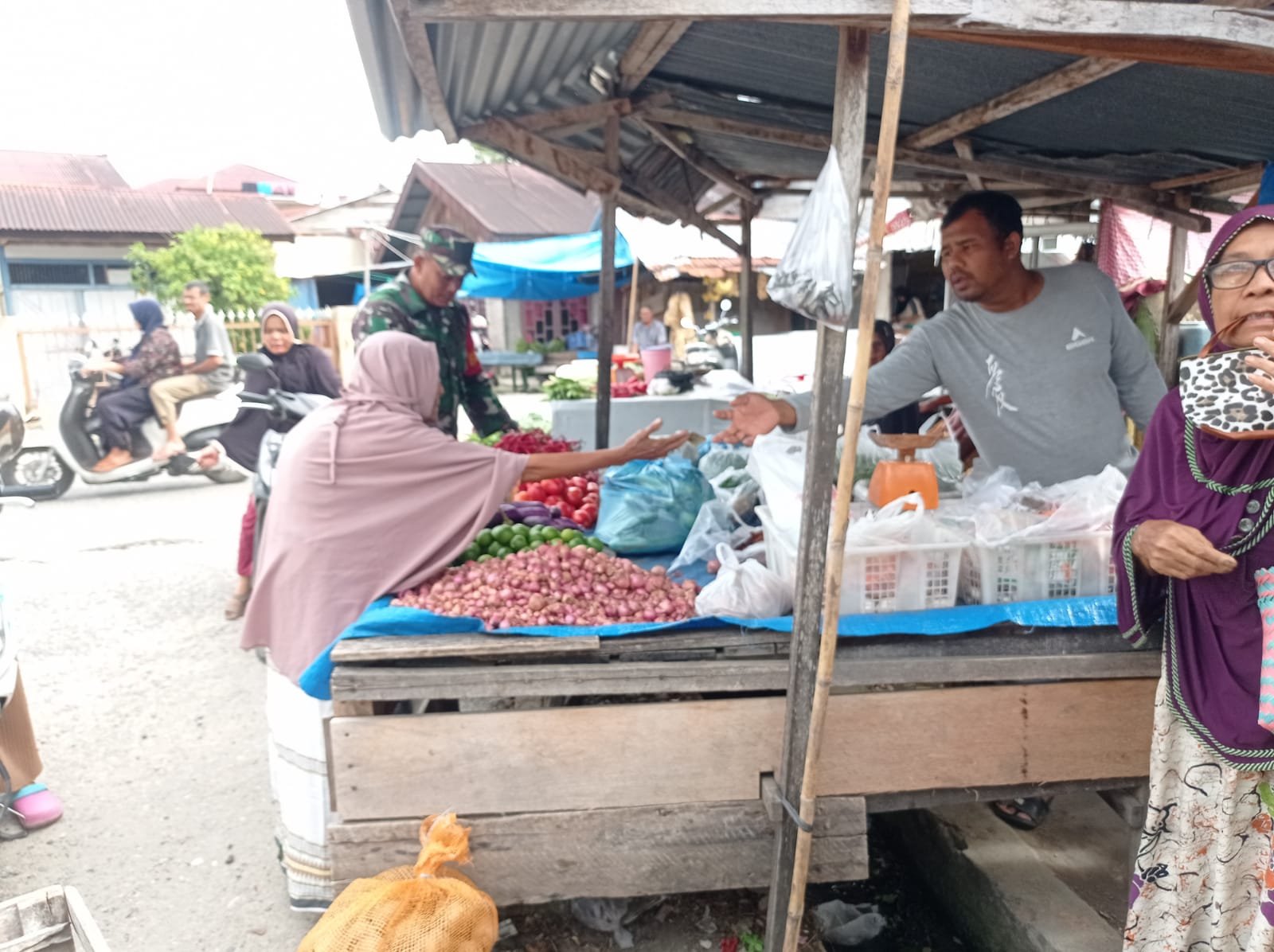 ABDYA – Babinsa Koramil 04/Susoh Kodim 0110/Abdya, Sertu Asrul, blusukan ke sejumlah pasar lokal dalam wilayah binaan, Desa Gadang, Kecamatan Susoh, Minggu (07/09/2025).