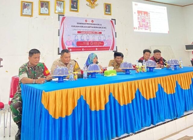 Sinjai – Babinsa Desa Pattongko Koramil 1424-03/Sinjai Tengah, Serda Asri Bahe, bersama Bhabinkamtibmas, menghadiri seminar Program Kerja Kuliah Kerja Karya Reguler (K3R) yang diselenggarakan oleh mahasiswa Universitas Muhammadiyah Sinjai (UMSI). Kegiatan ini berlangsung di Aula Kantor Desa Pattongko, Kecamatan Sinjai Tengah, Kabupaten Sinjai.