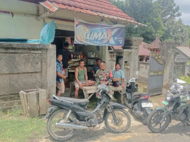 Bangli – Dalam rangka mempererat hubungan silaturahmi dan memperkuat kemanunggalan TNI dengan rakyat, Babinsa Desa Peninjoan Koramil 1626-03/Tembuku, Serka I Made Suarnika, melaksanakan kegiatan sambang dan komunikasi sosial (Komsos) dengan warga binaan yang bertempat di salah satu warung milik warga di Banjar Pulesari Kawan Desa Persiapan Pulesari, Kecamatan Tembuku, Kabupaten Bangli, Sabtu (1/11/2025).