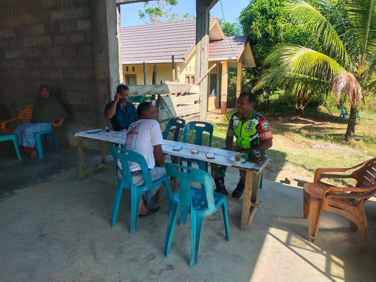 Dalam kegiatan tersebut, Sertu Haslimin berinteraksi langsung dengan salah seorang warga setempat sebagai sarana menjalin silaturahmi sekaligus mempererat hubungan antara TNI dan masyarakat di wilayah binaan. Komsos menjadi media efektif bagi Babinsa untuk hadir di tengah masyarakat dan mendengarkan secara langsung kondisi serta aspirasi warga.
