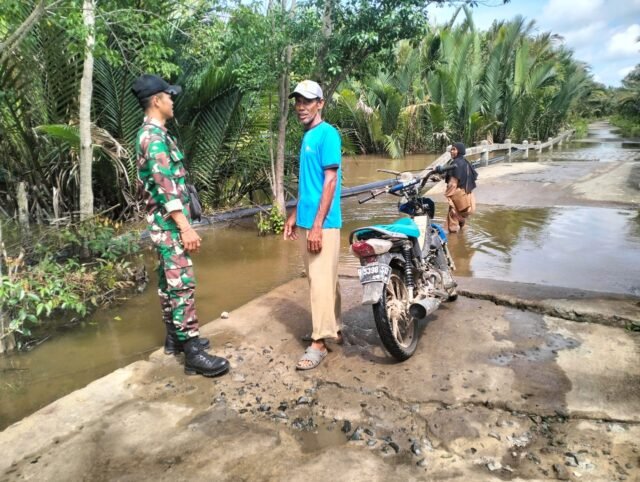 Kayong Utara – Babinsa Koramil 1203-08/Pulau Maya, Pratu Saeri, melaksanakan kegiatan monitoring dan pengecekan wilayah yang berpotensi terdampak pasang rob (air laut) di Kecamatan Pulau Maya, Kabupaten Kayong Utara, Selasa (11/11/2025).