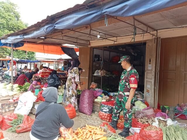 Sidrap – Babinsa Kelurahan Rappang dari Koramil 06/Panca Rijang, Serma Syahniawan Dani, melaksanakan kegiatan pemantauan ketersediaan dan harga bahan pokok di Pasar Sentral Rappang, Kecamatan Panca Rijang, Kabupaten Sidrap, Jumat 14 November 2025.