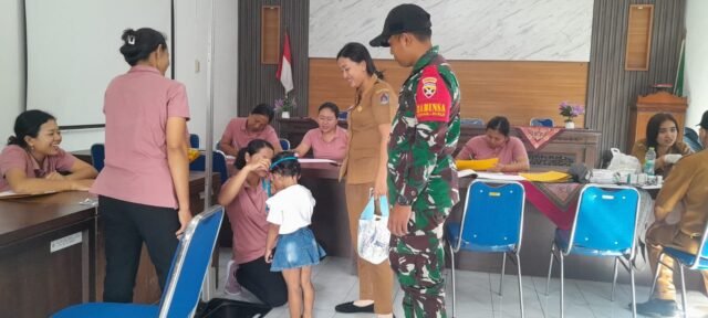 Klungkung,- Babinsa Selisihan Koramil 1610-01/Klungkung Serda Dewa Wasista bersama staf desa serta petugas kesehatan desa dan Puskesmas Klungkung II menggelar kegiatan rutin Posyandu Balita di Pustu Desa Selisihan, Kecamatan/Kabupaten Klungkung, Senin ( 13/10/25 ).