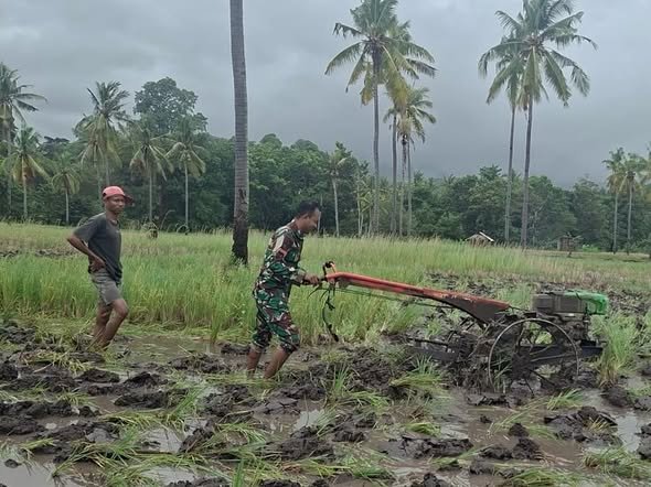 Sikka – Dalam upaya mendukung ketahanan pangan nasional, Babinsa dari Koramil 1603-02/Talibura, Pratu Yoris Nenga, ikut serta dalam kegiatan pembajakan sawah di Desa Nebe, Kecamatan Talibura, Kabupaten Sikka pada Kamis (22/01/2026). Kegiatan ini menunjukkan komitmen TNI Angkatan Darat dalam membantu petani mempersiapkan lahan mereka menjelang masa tanam.