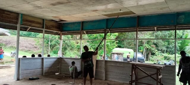 Boven Digoel, Papua Selatan — Dalam rangka mendukung perbaikan fasilitas umum, Satgas TMMD ke-126 Kodim 1711/BVD melaksanakan pengecetan Balai Kampung Waropko bersama masyarakat setempat. Kegiatan yang berlangsung pada Rabu (29/10/2025) ini menjadi bagian dari upaya memperindah bangunan agar lebih layak digunakan.