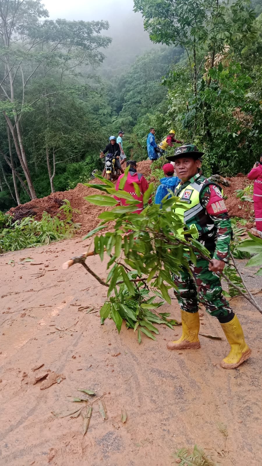 Menanggapi laporan dari warga, Sertu Frids Kadiwano, Babinsa Koramil 1612-01/Ruteng, segera bergerak ke lokasi untuk melakukan pengecekan dan pengaturan keamanan. Berkolaborasi dengan Kapolsek Cibal dan warga setempat, Sertu Frids membangun barikade darurat untuk mencegah pengguna jalan mendekati area rawan longsor.
