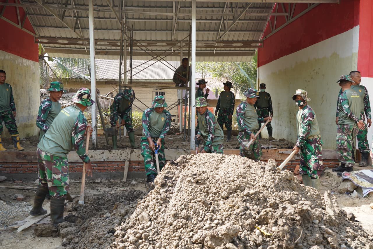 Berbagai pekerjaan fisik pun berjalan, seperti pengecatan ruang kelas, perbaikan plafon dan ventilasi, serta penggantian kursi sekolah. Selain itu, pemasangan atap dan perbaikan toilet juga dilakukan untuk memastikan sarana belajar yang aman dan nyaman bagi para siswa. TNI juga terlibat dalam kegiatan penimbunan balai pengajian dan pengecatan fasilitas sanitasi.