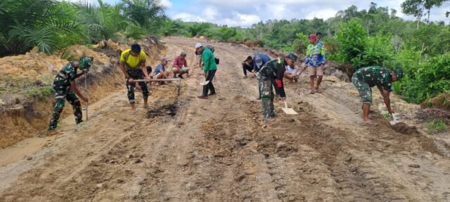 NUNUKAN – Satuan Tugas TNI Manunggal Membangun Desa (Satgas TMMD) Ke-124 Komando Distrik Militer (Kodim) 0911/Nunukan, dengan dedikasi dan semangat juang yang tinggi, aktif berkolaborasi bersama segenap elemen masyarakat, khususnya di Kelurahan Mansapa, Kecamatan Nunukan Selatan. Kegiatan kolaborasi ini terwujud dalam sebuah aksi gotong royong masif yang dilaksanakan secara manual, berfokus pada upaya meratakan tumpukan material timbunan pilihan, atau yang dikenal dengan istilah basecourse. Material ini merupakan komponen krusial dalam pembentukan dasar badan jalan, yang kini tengah dibangun dengan panjang mencapai 2.600 meter dan lebar ideal 6 meter, berawal dari titik nol yang telah ditentukan.